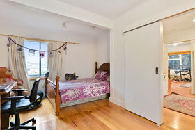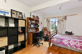 Even though there is only one bedroom, it is a very large double and heaps of room with the built-in wardrobe and plenty of room for extra storage as well. It would take whatever size bed you have and then extra if needed.