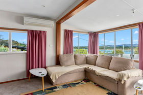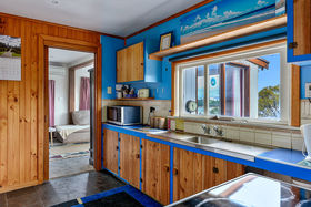 The cottage comprises a separate kitchen which is older but neat and tidy with adequate cupboard and bench space. A sliding door takes you through to the lounge/dining where you can really take in the beautiful water and mountain views on offer. There is ample room for your lounge and a small nook which would be a good place for your dining setting. A reverse-cycle heat-pump will keep your home comfortable all year round. A unique little door from the lounge takes you out onto the front deck, a lovely sunny spot to enjoy a BBQ with family and friends or just a quiet drink or read at the end of the day.