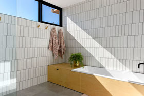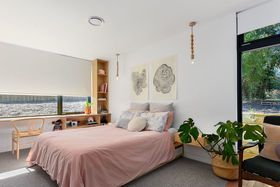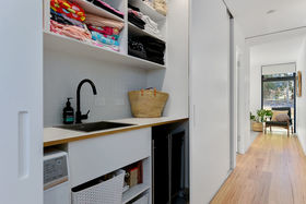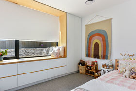 The spacious hideaway laundry is tucked neatly away in the hallway with a generous linen cupboard to the side. They are neatly positioned between the second and third bedrooms that host lovely large recessed windows which create innovative window seating and drawer space right along the wall to the built-in robes. Great storage for both children's bedrooms. The main double bedroom also has the lovely long recessed window creating desk space with adjoining shelving as well as large built-in robes.